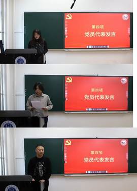新发展党员代表葛少钰、张一阳同志在发言中分享了学习党的创新理论、积极向党组织靠拢的思想成长历程,表达了牢记入党誓词、恪守党员本色的坚定决心。老党员代表梁宇同志结合自身实践,分享了坚守初心使命、积极担当作为的体会,激励新老党员共同奋进。