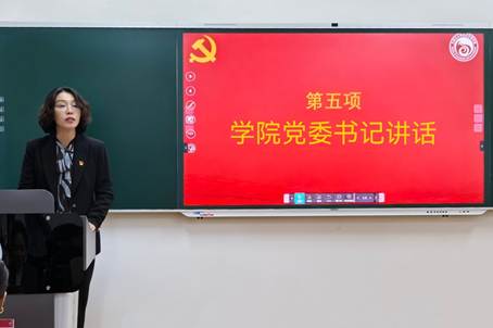 学院党委书记李宏宇作了讲话,她代表学院党委向全体新发展党员表示祝贺,并要求全体党员铭记入党誓词,积极以自身实际行动充分践行誓词,严格履行党章规定的各项义务,正确行使党章赋予的各项权利,严格遵守党的纪律和党的章程,努力做名副其实的共产党员。