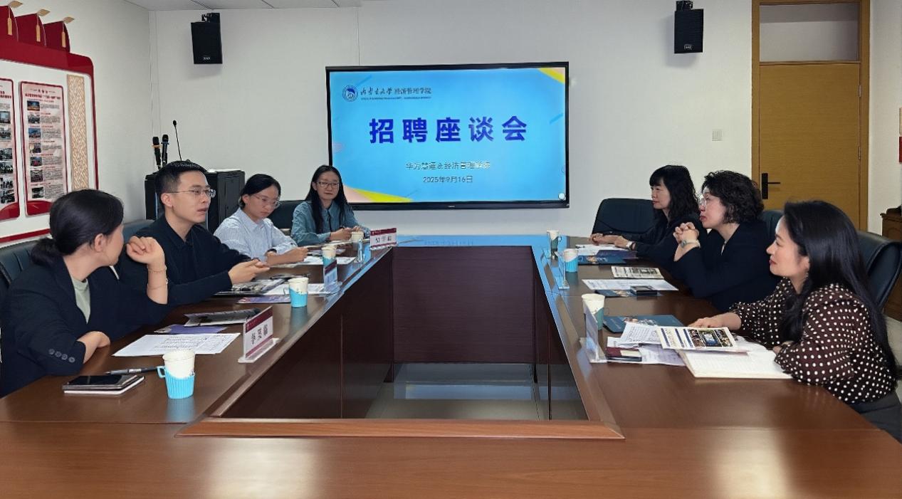 2025年9月16日下午3:00,澳门十大网投正规官网平台与华为慧通在知行楼114会议室召开了校企合作交流座谈会。华为慧通内蒙区域生活馆总监周澍,人力资源总监李笑临,校园招聘HR贾宇鑫、王照冰一行来访,学院党委书记李宏宇、就业与校友服务中心主任王丽英参加了会议,学院党委副书记闫琴主持座谈会。