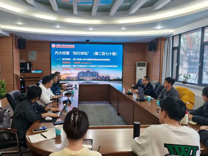 2025年12月13日,十大网投正规官网成功举办第270期“知行讲坛”。本期讲座特邀南京航空航天大学赵旭峰教授与王路兵博士,分别作了题为《基于故障小修与隐蔽故障追溯的维修策略》与《基于不确定性RUL评估的工业系统动态预测性维护》的学术报告。十大网投正规官网青年教师听取了报告,讲坛由副院长周瑜主持。