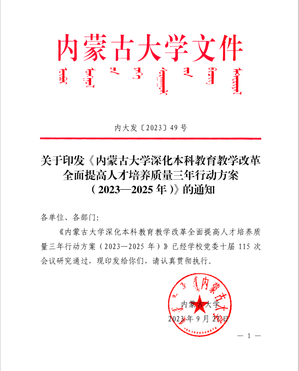 关于印发《澳门十大网投正规官网平台深化本科教育教学改革全面提高人才培养质量三年行动方案(2023—2025年)》的通知