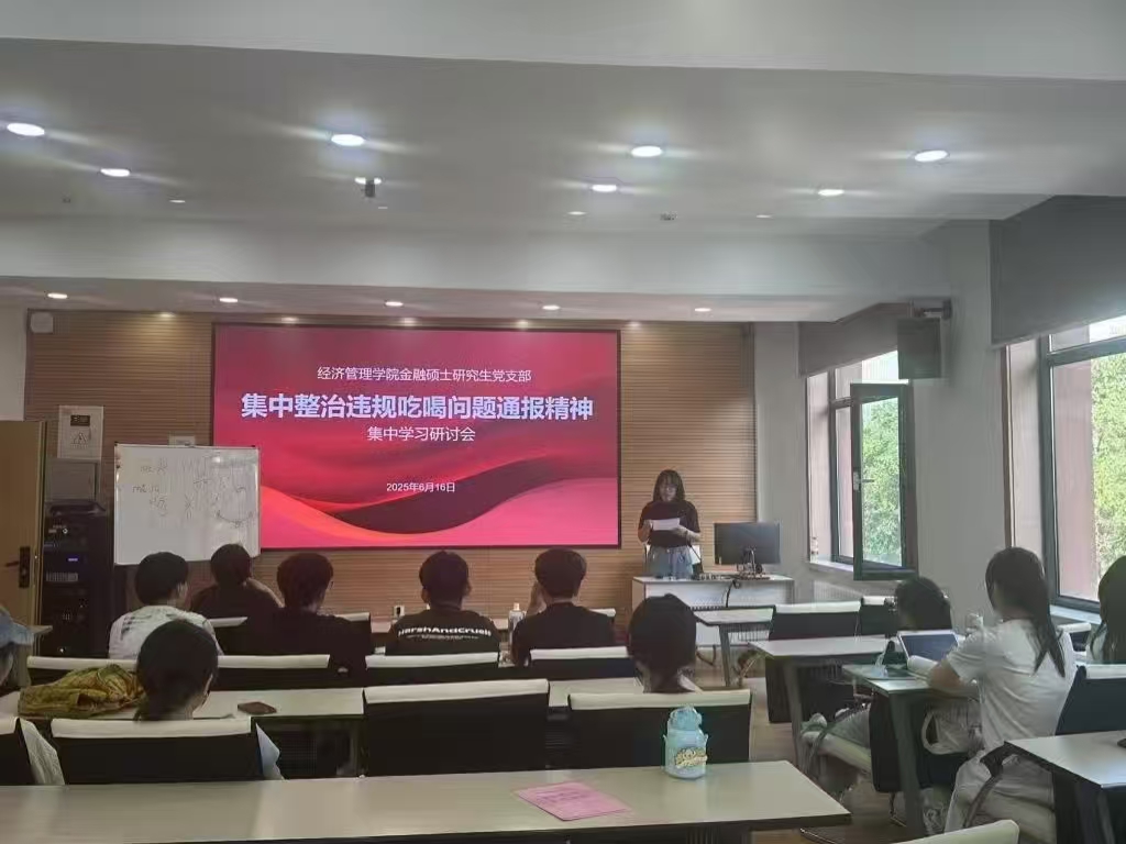 为深入贯彻落实中央八项规定精神,进一步加强作风建设,2025年6月16日下午,金融专硕党支部在知行楼309教室召开了集中整治违规吃喝问题专题学习研讨会,支部书记陈晨主持会议。