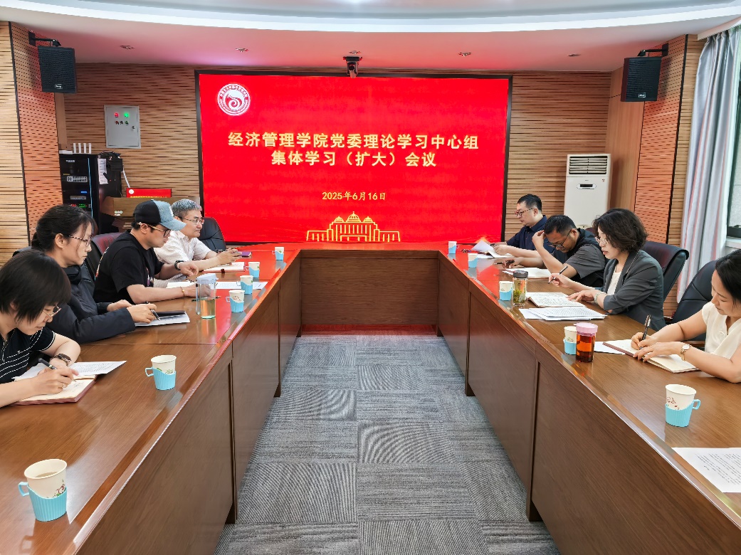 2025年6月16日上午,澳门十大网投正规官网平台党委理论学习中心组召开集体学习(扩大)会,学院中心组成员、各党支部书记参加了学习,会议由学院党委书记李宏宇主持。