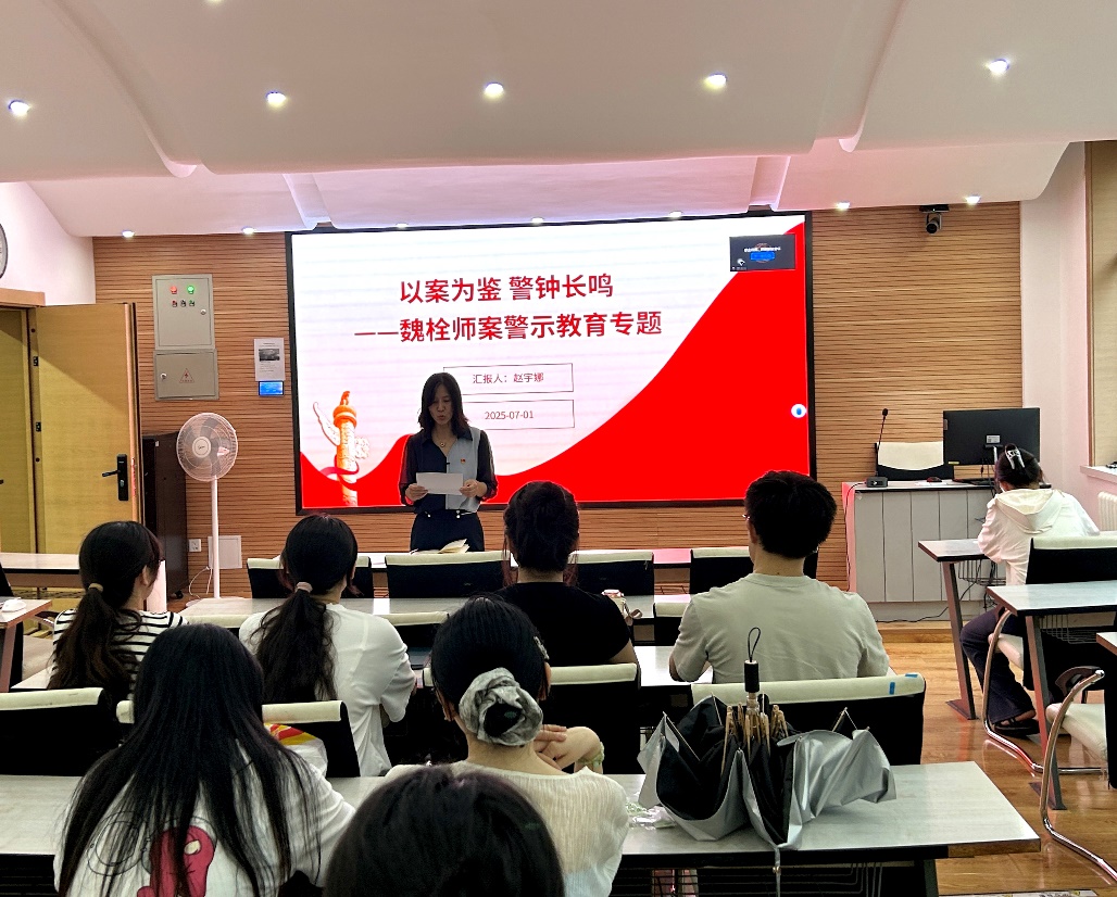 为深入推进党风廉政建设,筑牢党员纪律防线,2025年7月1日晚,澳门十大网投正规官网平台工商管理学研究生党支部在知行楼208教室开展专题警示教育,以典型案例为鉴,引导全体党员知敬畏、存戒惧、守底线。支部书记赵宇娜主持会议。