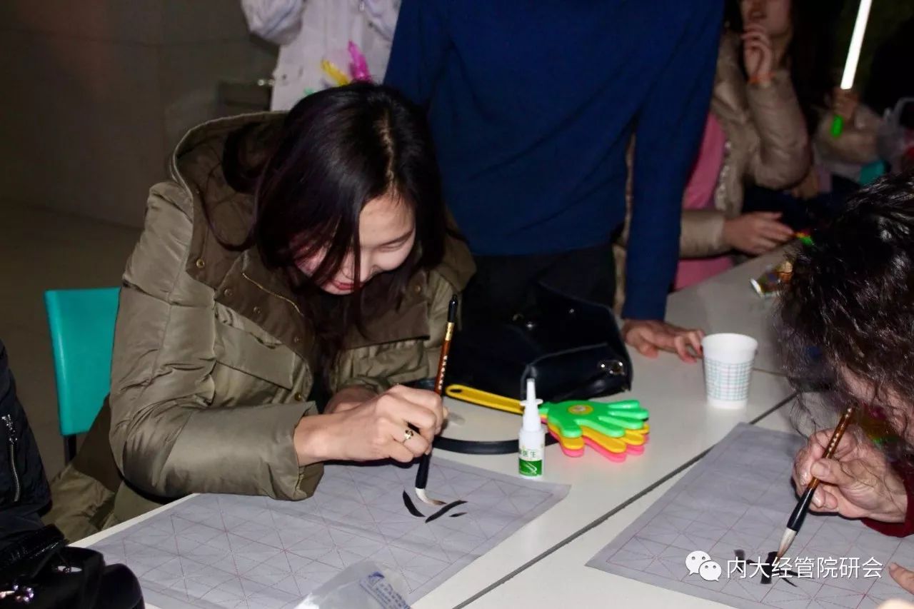 活动现场也为观众准备了笔墨等书法工具,在聆听讲解之后,中外学生共同动笔,进行书法临摹。很多留学生是第一次接触书法、接触毛笔,书法临摹新鲜有趣,也让留学生更进一步融入中国传统文化。