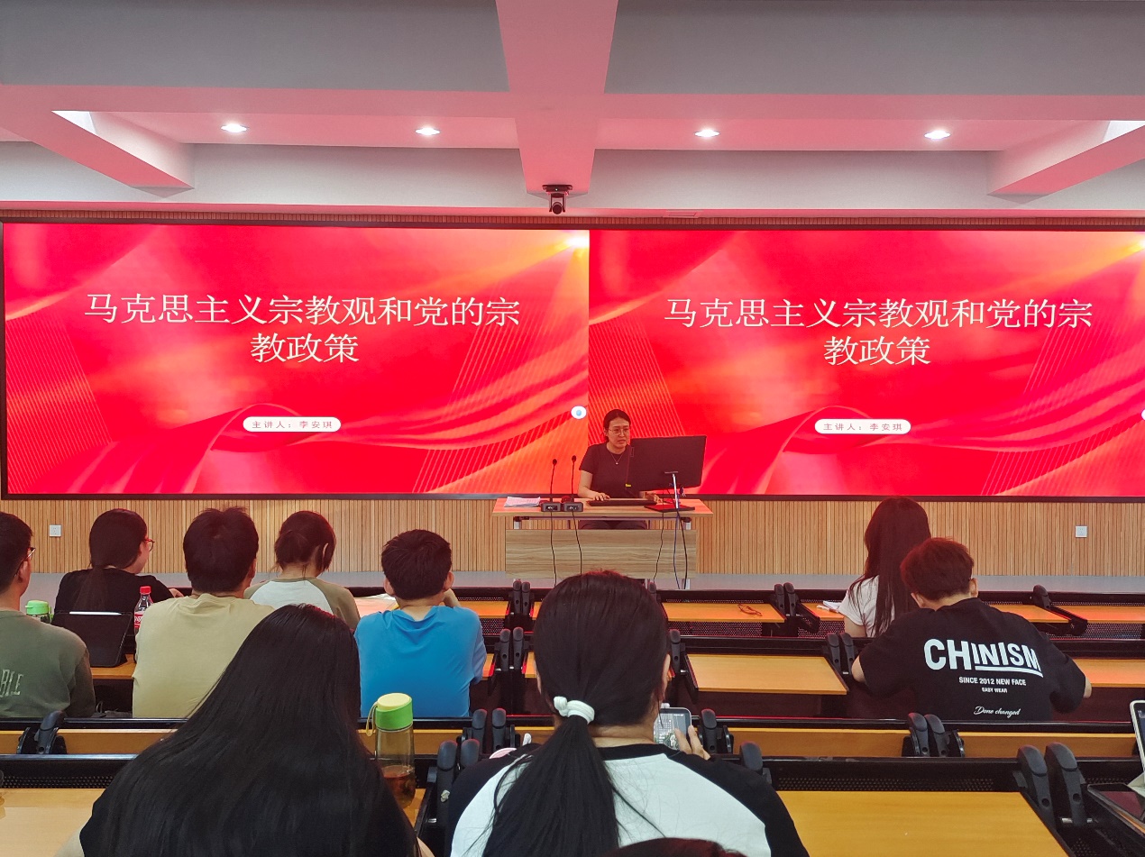 5月30日,学院团委副书记兼学工办副主任李安琪带领学员们共同学习了马克思主义宗教观和党的宗教政策,从马克思主义宗教观的基本内容、马克思主义政党对待宗教的态度和党的宗教政策三个方面进行了系统介绍,强调学员们要树立马克思主义的科学信仰,励志成为可靠的社会主义建设者和接班人。