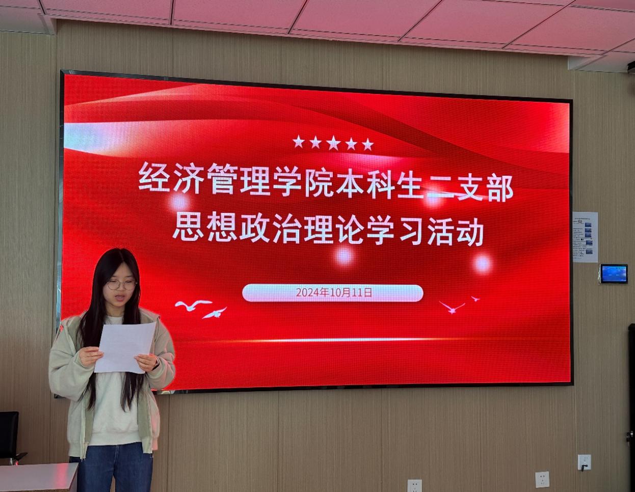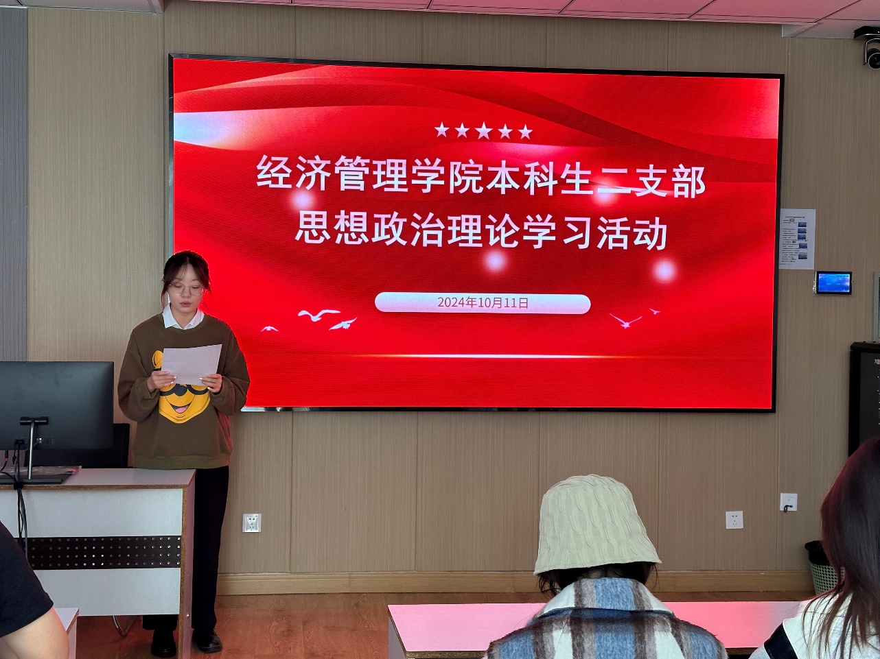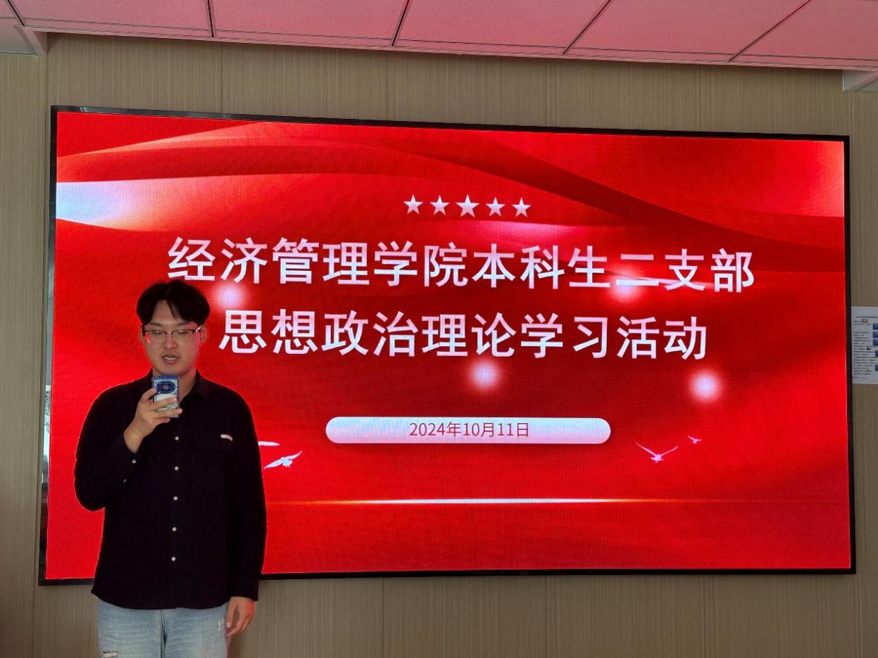 为进一步学习贯彻习近平新时代中国特色社会主义思想,提升支部党员政治素质和党性修养,2024年10月11日下午,澳门十大网投正规官网平台本科生二支部在知行楼(经管楼)205教室开展了思想政治理论学习活动。万耀芳、康书硕、王泽旭三位同志分别围绕不同主题带领支部党员展开学习。