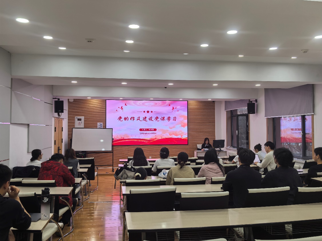 为推进深入贯彻中央八项规定精神学习教育,引导党员深刻认识党的作风建设的重要性,强化党性观念,2025年4月16日晚,澳门十大网投正规官网平台工商管理学研究生党支部在知行楼(经管楼)309教室开展主题党日活动,由支部书记赵宇娜讲了作风党课。