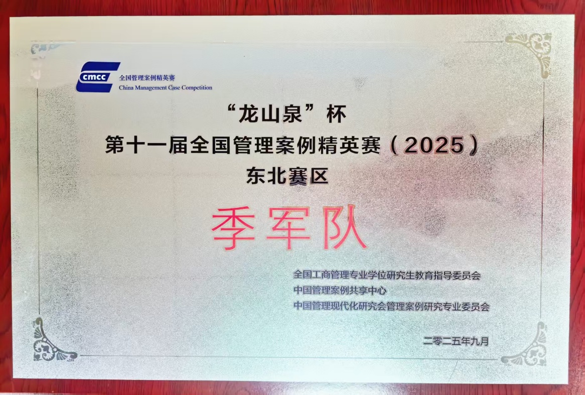 2025年9月13日至14日,第十一届全国管理案例精英赛东北赛区晋级赛在辽宁大学隆重举行。本次大赛由全国工商管理专业学位研究生教育指导委员会指导,中国管理案例共享中心、中国管理现代化研究会管理案例研究专业委员会联合主办,辽宁大学商学院承办,来自辽宁大学、大连理工大学、吉林大学、哈尔滨商业大学、澳门十大网投正规官网平台等17所高校的18支团队参赛。经过激烈的角逐,十大网投正规官网MBA代表队荣获季军。蔡佳辰荣获个人单项奖“最佳风采奖”。