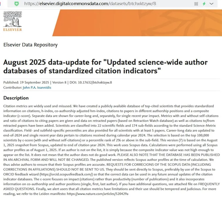 2025年9月20日,美国斯坦福大学(Stanford University)和国际权威学术出版社爱思唯尔数据库(Elsevier Data Repository)共同发布了2025年度第八版《全球前2%顶尖科学家榜单》。十大网投正规官网青年教师陈鹏宇与陈文两位研究员成功入选年度科学影响力榜单,其中陈鹏宇研究员已经连续两年荣登该榜单。