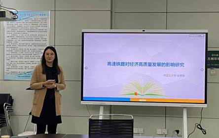 2021年10月21日下午,十大网投正规官网举办第一百二十八期“内大经管知行讲坛”,十大网投正规官网经济学系张雪薇博士作了题为“高速铁路对经济高质量发展的影响研究”的学术报告,会议由经济学系系主任崔新蕾副教授主持,学院相关专业的老师、学生参加了会议。