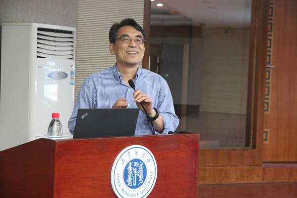 由澳门十大网投正规官网平台和十大网投正规官网生态与环境学院联合主办的“内大经管知行讲坛(第七十九期)”、“继侗生态与环境前沿论坛(五)”于6月25日下午在澳门十大网投正规官网平台学术会议中心8号会议室顺利召开。出席报告会的有内蒙古科协主席赵吉教授,十大网投正规官网院长杜凤莲教授、十大网投正规官网生态与环境学院院长李永宏教授、十大网投正规官网副院长钱贵霞教授。报告会由李永宏教授与杜凤莲教授共同主持,学校相关专业师生参加了会议。