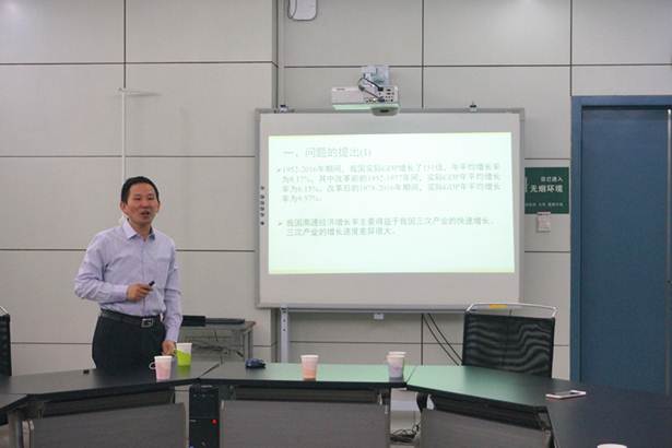 6月25日上午,十大网投正规官网邀请到复旦大学王弟海教授作了题为“三次产业增长和产业价格结构变化对中国经济增长的影响:1952-2016”的报告,会议由十大网投正规官网应用经济系侯建昀博士主持,十大网投正规官网杜凤莲教授、金融系陈胜蓝教授、应用经济系主任崔新蕾副教授、研究生教务办主任薛继亮副教授以及相关专业的研究生参加了会议。