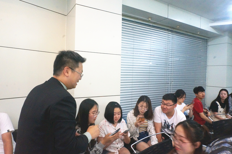 讲座中,蒋中衍博士首先对南卡罗莱纳大学进行介绍,内容涉及地理位置、院系设置及资源配置等方面,详细说明了双方国际交流合作项目(1+2+1、3+1+1)和学生学习、生活概况。同时还分析了学校所在地南卡罗莱纳州的产业概况、人文地理和就业环境。而后,蒋博士以家乡台湾奶茶的生产及制作过程为在场的师生通俗易懂地讲解了“供应链管理及牛鞭效应”,最后蒋中衍教授以一个生动有趣的供应链游戏结束了本场讲座。