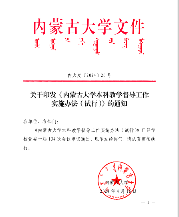 关于印发《澳门十大网投正规官网平台本科教学督导工作实施办法(试行)》的通知